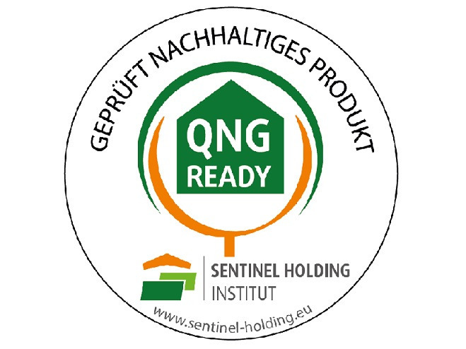 Die Produkte erfüllen die Anforderungen an „Schadstoffvermeidung in Baumaterialien“ gemäß QNG-Anforderungskatalog: diese wurden daraufhin geprüft, dass sie emissionsarm sind und keine schädlichen Stoffe in die Raumluft abgeben. Damit erfüllen Sie einen wichtigen Teil der Kriterien, die für eine vollständige QNG-Zertifizierung Ihres Gebäudes notwendig sind.